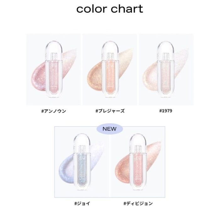 透明感と輝きを盛り込んだコスメが注目される韓国ブランド『glow(グロー)』。大粒ラメ入りの「グラスグリッター」は何種類ものパールやラメがブレンドされて、オーロラっぽい輝きが魅力的♡ 全5色のうち#プレジャーズ以外の4色にはキラめきの強い六角形のパールが入っています。66%以上水分ベースなので粉飛びしにくく、しっとりした使用感。パーティーメイクにも大活躍です。