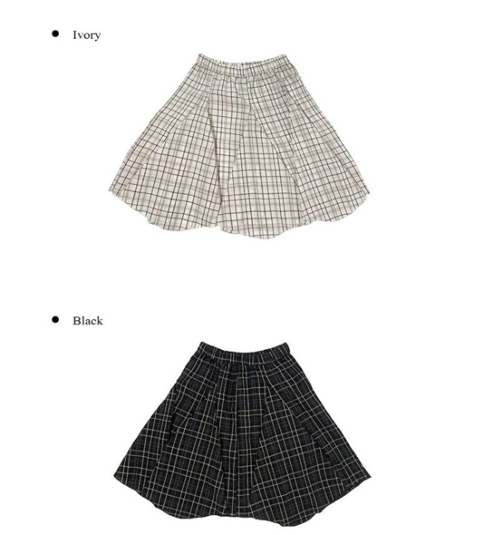 アンバランスなデザインがオシャレな、Aラインのミディ丈スカート。クラシックなチェック柄でヴィンテージライクな着こなしが楽しめます。スカウザーにはもちろん、タイツ&ブーツとコーデしても可愛い! カラーは、合わせやすいアイボリーとブラックの2色です。