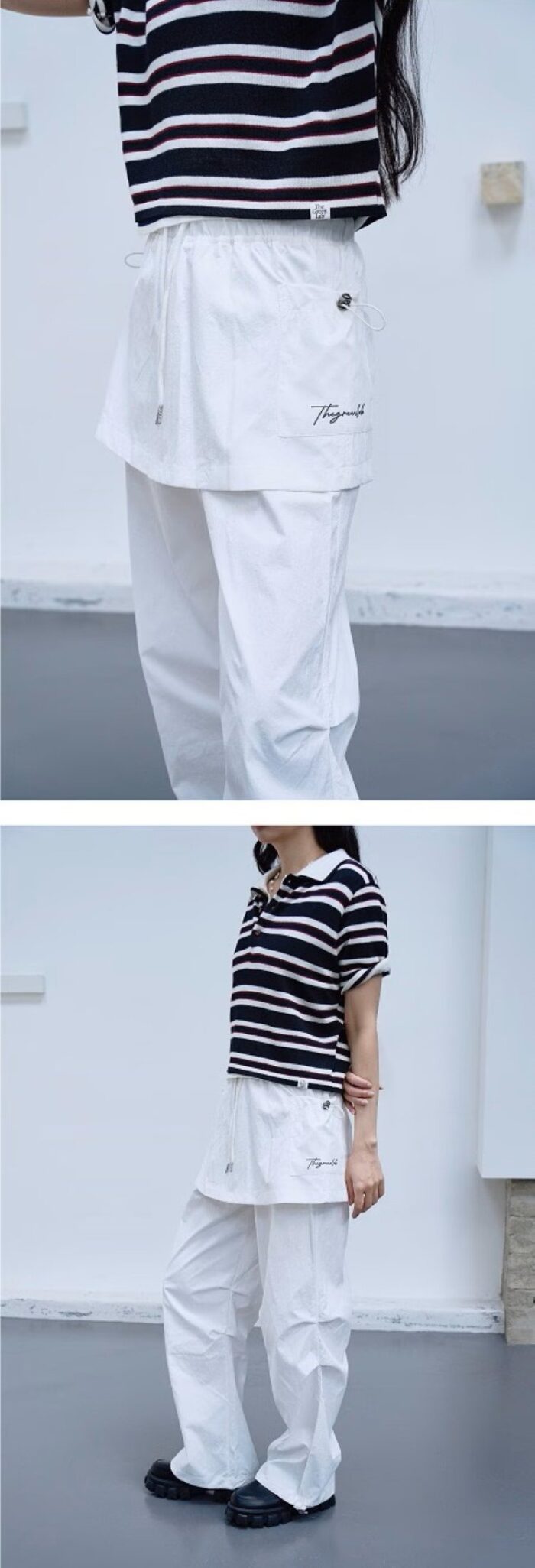 ミニマルで着回しのきくデイリーウェアブランド『The GREEN Lab』のバンディングパンツ&サイドストリング付きのスカートセット。レジャーなどアクティブシーンにぴったりです。ホワイト、ブラック、チャコールグレーの3色展開で、雰囲気もそれぞれ。敢えてキュートなトップスを合わせてもオシャレだし、秋から冬へはニットをコーデしても可愛い♡
