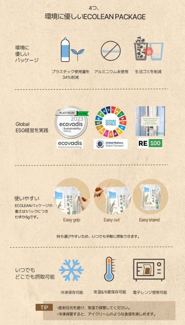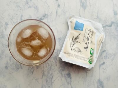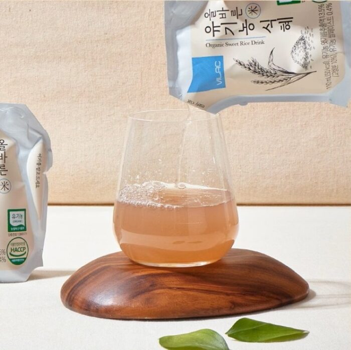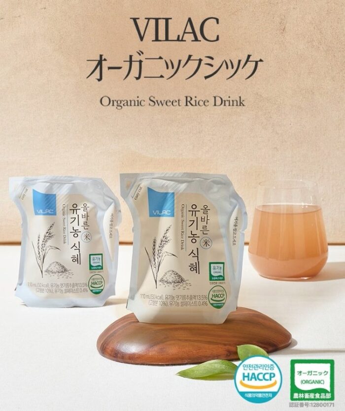 今回お試ししたvilacオーガニックシッケは、主な材料であるヨッキルムエキス、砂糖、ライスペーストなど100%オーガニック原料でつくられたもの。伝統的な製法に基づいて、韓国産ヨッキルムと米の最適な比率でつくられています。1個110mlとコップ1杯分のパウチタイプで、50kcalとカロリーも抑えられています。常温保存でき、冷凍することもできます。