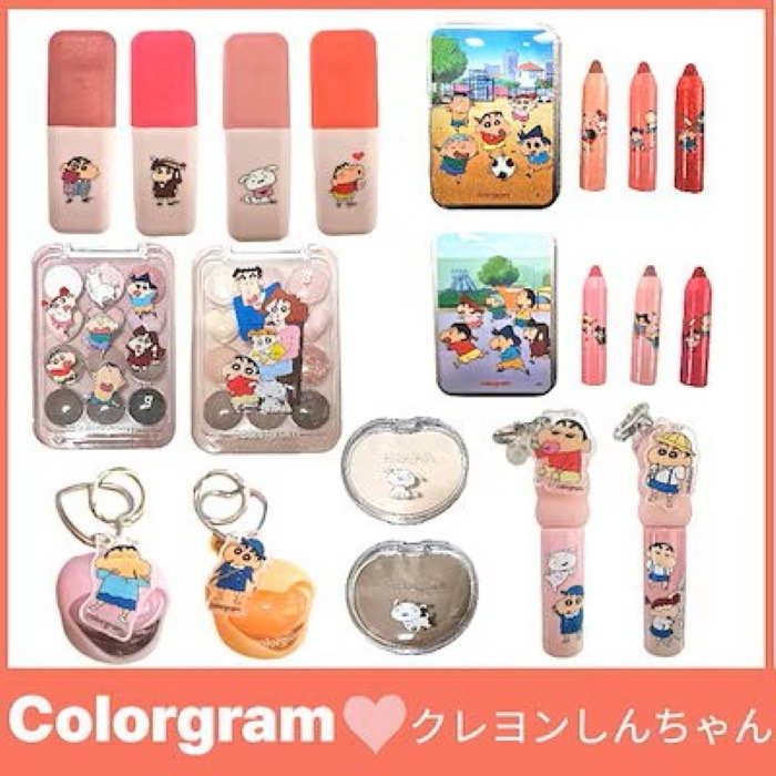 韓国でも絶大な人気を誇るクレヨンしんちゃん。Qoo10でもコラボコスメがズラリとそろっています。オリーブヤング発のメイクアップブランド『カラーグラム』では、ティントリップやアイパレットなどがスペシャルコラボ。しんちゃんと仲間たちをデザインしたケース入りのリップクレヨンセットは、しんちゃんファンでなくても欲しくなっちゃいます♡