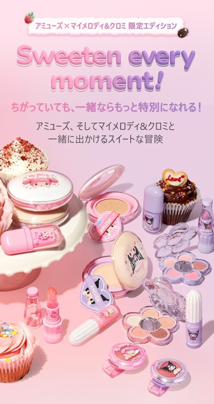 マイメロディ50周年とクロミ20周年を記念した限定コラボアイテムがアミューズから登場! ロングセラーのクッションファンデーションや人気のベベティント、新作のフローラアイパレットやスパークルソーダリップがスペシャルエディションで発売されています。バッグなどにつけて持ち歩けるリップ&チークはアクセサリーとしても使いたい可愛さ♡