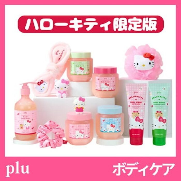 ヒットアイテムのボディスクラブなど、ボディケア商品が人気の韓国ブランド『プル』。ハローキティの限定パッケージで発売されているのは、ボディスクラブ各種とボディウォッシュ。洗顔バンドなどのギフト付きアイテムもあるので、キティファンはお早めにチェック!