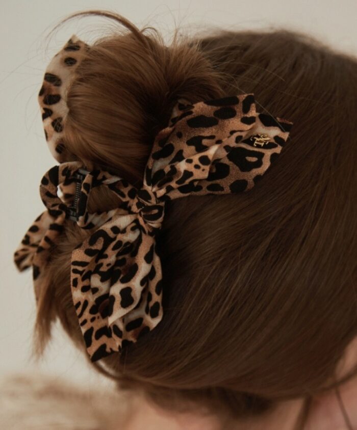 後ろ姿を華やかにまとめるレオパード柄のリボンクリップ