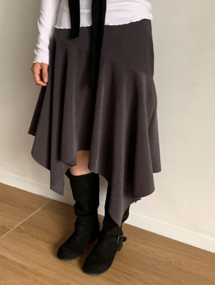 スエードのアンバランススカートでシーズンライクなコーデを