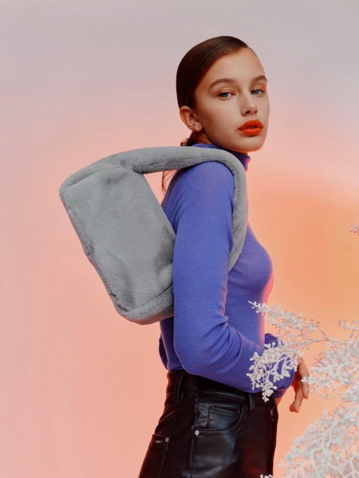ファーのバッグをコーデのアクセントにして♡