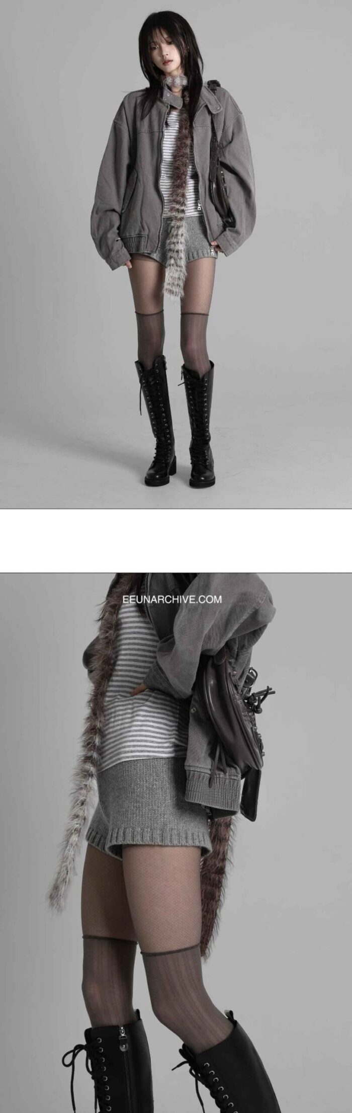 ホットパンツタイプのタイトなニットパンツならY2Kファッションにもぴったり。ヴィンテージ感のあるアウターやカットアウトしたトップスと組み合わせて、2000年代っぽいムードを高めて。ウォッシュドデニムのボンバージャケットにニットパンツを合わせて、クール&モダンなグレートーンのコーデに。シアーなパンストをレイヤードした足もとも小ワザがきいています♪